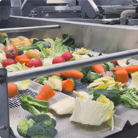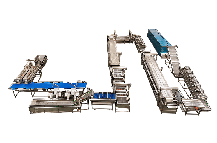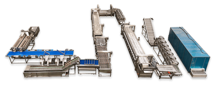 vegetable washing machines, fruit and vegetable cutting machines, quick freezers, packaging